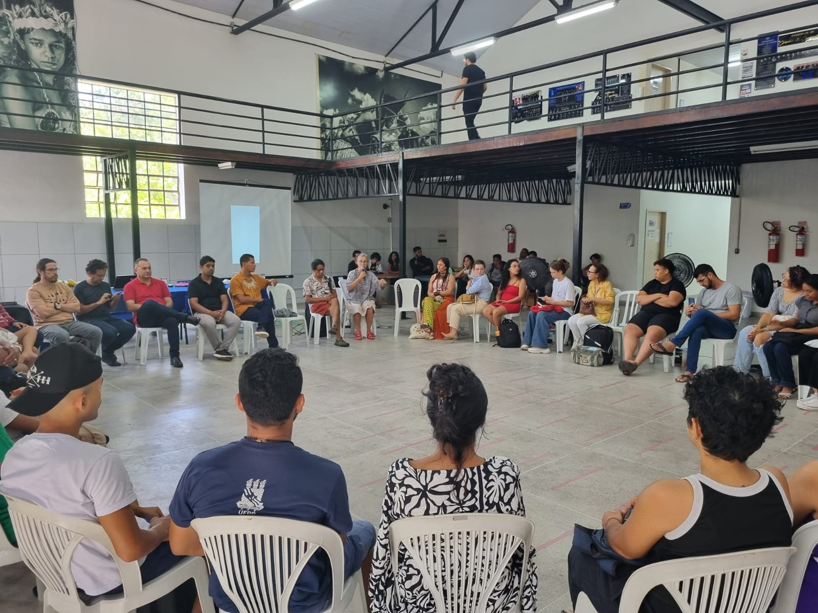 Ao longo de um ano, através de reuniões online, foram esboçados os desenhos para encontros presenciais no território Potiguara da Aldeia São Francisco, na Baía da Traição, e nos Campus IV e I da Universidade Federal da Paraíba entre os dias 18 a 21 de fevereiro, com o horizonte de estreitar laços entre a rede das Escolas Vivas e o território Potiguara.